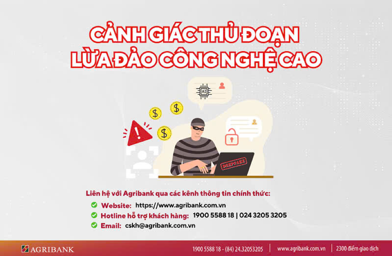 Agribank đã triển khai các hình thức cảnh báo, cũng như phát hành nhiều sản phẩm tuyên truyền, nâng cao nhận thức của khách hàng về các phương thức lừa đảo hiện nay như: chuyên mục “Vấn đề bạn hỏi”, Podcast “Tips nhỏ bỏ túi”, các ma-ket cảnh báo…