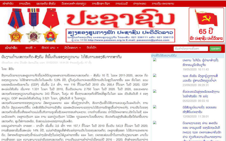 Báo điện tử của Báo Pasaxon, Cơ quan ngôn luận của T.Ư Đảng NDCM Lào có các bài viết như “Thành tựu kinh tế, xã hội nổi bật của Việt Nam được quốc tế công nhận”, bài “Đại hội lần thứ XIII của Đảng Cộng sản Việt Nam bế mạc, thành công tốt đẹp”, đánh giá toàn diện những thành tựu kinh tế - xã hội mà Việt Nam đạt được trong 10 năm qua.