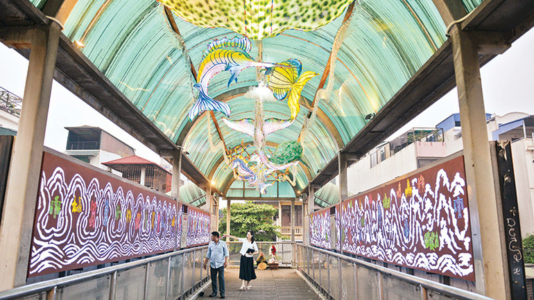 Ủy ban nhân dân quận Hoàn Kiếm vừa khánh thành công trình nghệ thuật công cộng trên cầu đi bộ Trần Nhật Duật, biến cây cầu thành không gian nghệ thuật hấp dẫn.