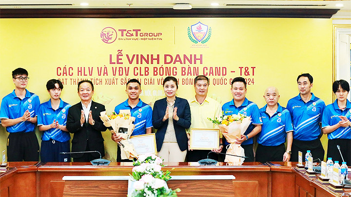 Ngày 1/8, tại Hà Nội, lễ vinh danh, khen thưởng tập thể và cá nhân có thành tích xuất sắc tại các giải quốc gia năm 2024 của CLB Bóng bàn CAND-T&T được tổ chức với sự tham dự của Đại tá Nguyễn Thị Thúy Thanh, Phó Cục trưởng Công tác Đảng và công tác chính trị (Bộ Công an), Phó Chủ tịch kiêm Tổng Thư ký Hiệp hội Thể thao CAND và ông Đỗ Quang Hiển, nhà sáng lập, Chủ tịch Ủy ban chiến lược Tập đoàn T&T Group.