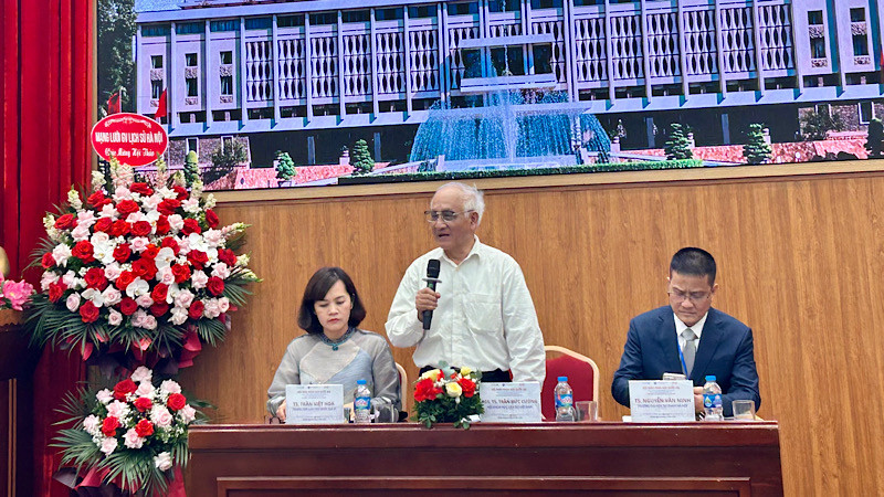 Tiến sĩ Vũ Đức Liêm, Phó Trưởng Khoa Lịch sử, Trường đại học Sư phạm Hà Nội, phát biểu đề dẫn hội thảo.
