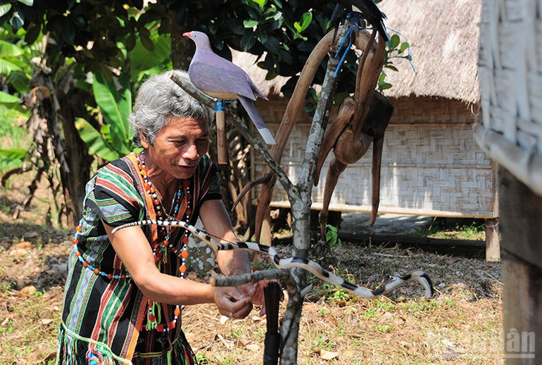 Ông chia sẻ về ý nghĩa của cây nêu: Trong không gian sống của người Cơ Tu, cây nêu là linh hồn của lễ hội. Từng nét chạm khắc, từng sợi chỉ, từng bông lúa được treo lên cây nêu đều gửi gắm những lời cầu nguyện chân thành của dân làng đến các đấng thần linh. Việc trang trí cây nêu không chỉ đơn thuần là làm đẹp, mà còn là sự gửi gắm những ước nguyện của người Cơ Tu đối với rừng thiêng, với đất mẹ và với những mùa màng bội thu.