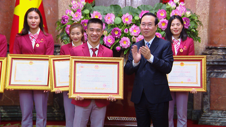 Tại buổi gặp mặt, thay mặt Lãnh đạo Đảng, Nhà nước, Chủ tịch nước Võ Văn Thưởng và các đồng chí Lãnh đạo đã trao Huân chương Lao động Hạng Nhì tặng vận động viên của Đội tuyển Điền kinh Việt Nam Nguyễn Thị Oanh; trao 37 Huân chương Lao động Hạng Ba cho các vận động viên khác của Đoàn đạt thành tích đặc biệt xuất sắc trong thi đấu.