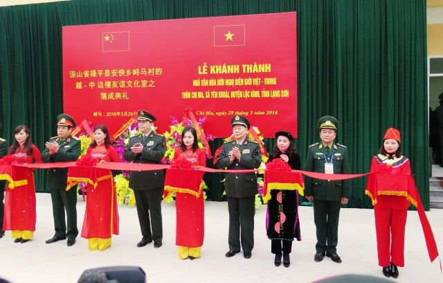 Hai bộ trưởng dự lễ cắt băng khánh thành nhà văn hoá hữu nghị biên giới Việt - Trung.