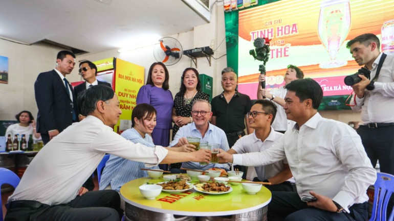 Mang trong mình niềm tự hào “Một nét văn hóa Hà Nội”, Bia Hơi Hà Nội vinh dự được lựa chọn trở thành một trải nghiệm ẩm thực ấn tượng của Thủ tướng Australia Anthony Albanese trong chuyến thăm Việt Nam vào đầu tháng 6/2023. Ngay sau khi máy bay hạ cánh, Thủ tướng Australia Anthony Albanese đã đến thăm Trường Đại học RMIT và ăn trưa tại một quán ăn ở khu phố cổ Hà Nội. Tại đây, ông cùng các cộng sự đã thưởng thức món bánh mì truyền thống Hà Nội và Bia Hơi Hà Nội - thức uống quen thuộc của người dân Thủ đô trong những ngày hè nắng nóng. Sự ghé thăm và thưởng thức đặc biệt này một lần nữa khẳng định Bia Hơi Hà Nội đã làm tốt vai trò “Đại sứ ẩm thực”, mang tinh hoa Việt Nam thành nhịp cầu kết nối mối quan hệ thân tình, tốt đẹp với bạn bè quốc tế.