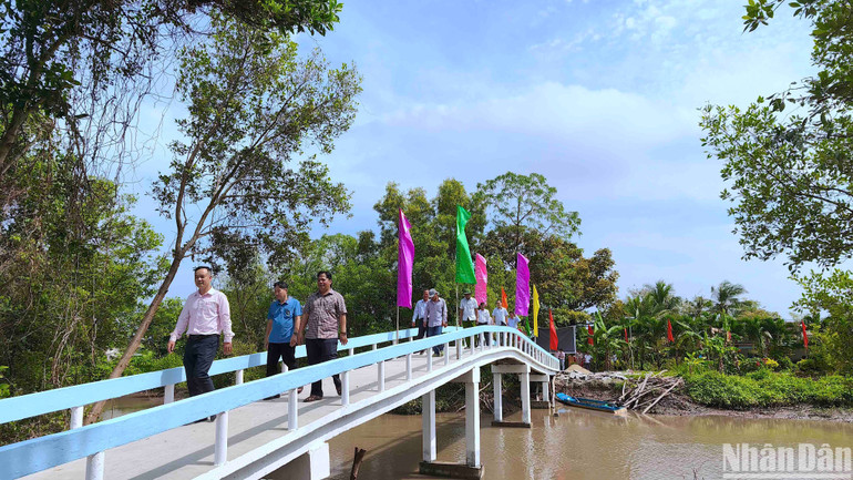 | Nghi thức khánh thành cầu Lung Dừa tại vùng giáp ranh xã Tạ An Khương Đông và xã Tân Đức của huyện Đầm Dơi vào sáng 20/12. |