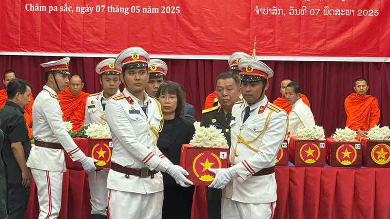 Kết thúc buổi lễ, đại diện tỉnh Kon Tum và tỉnh Champasak đã ký biên bản bàn giao và tiễn đưa 16 hài cốt liệt sĩ về nước để tổ chức truy điệu và an táng tại đất mẹ Việt Nam.