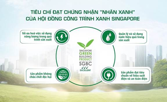 Nhằm chứng minh cam kết mạnh mẽ trong việc phát triển sản phẩm xanh, CADIVI đã đạt được chứng nhận Singapore Green Building Product (SGBP) do Hội đồng Công trình Xanh Singapore (Singapore Green Building Council - SGBC) cấp. Đây là một trong những tiêu chuẩn uy tín đánh giá mức độ thân thiện môi trường của sản phẩm trong ngành công nghiệp xây dựng, góp phần thúc đẩy xu hướng phát triển bền vững trong khu vực và trên thế giới.