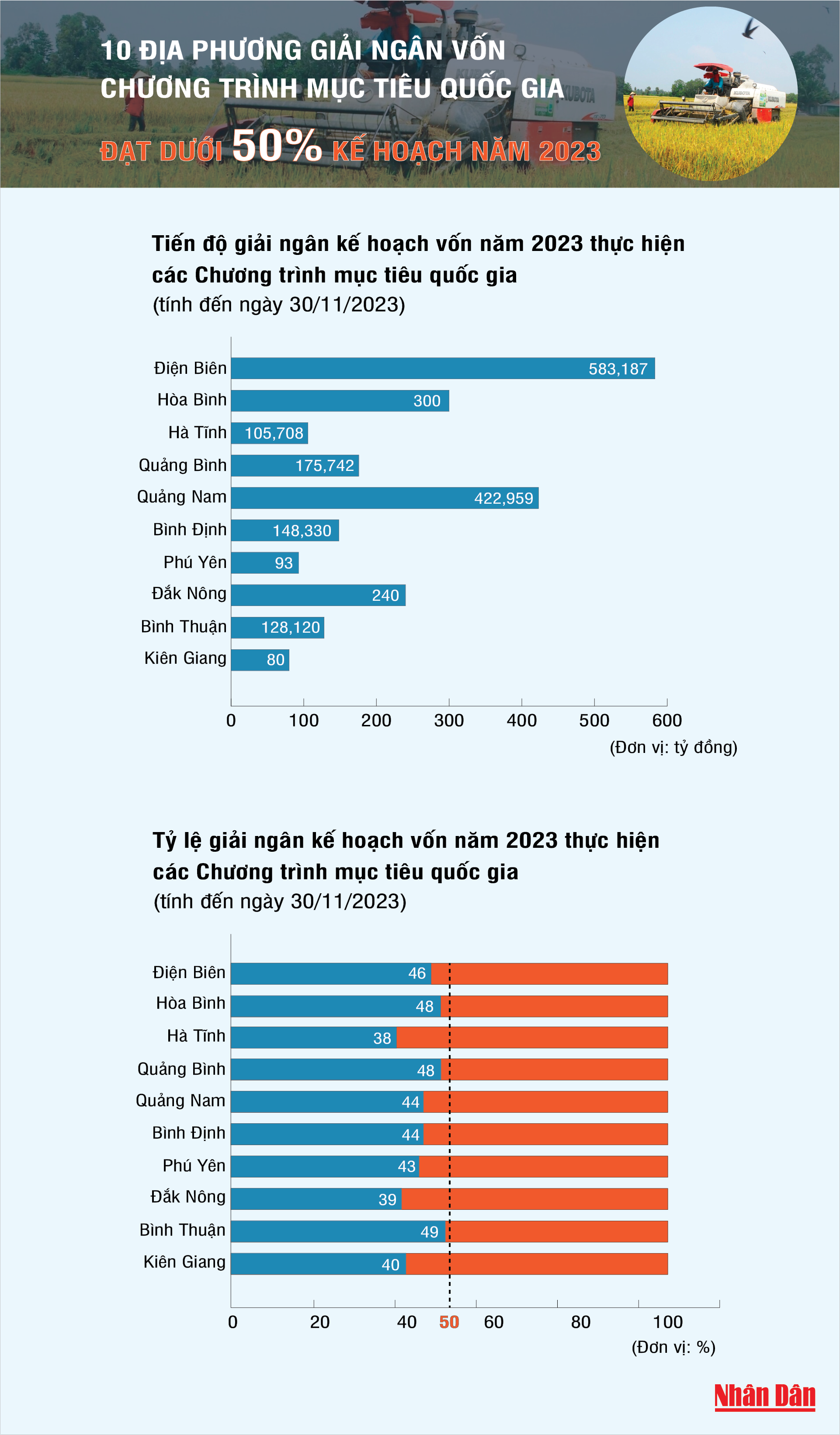 [Infographic] 10 địa phương giải ngân vốn Chương trình mục tiêu quốc gia đạt dưới 50% kế hoạch 2023