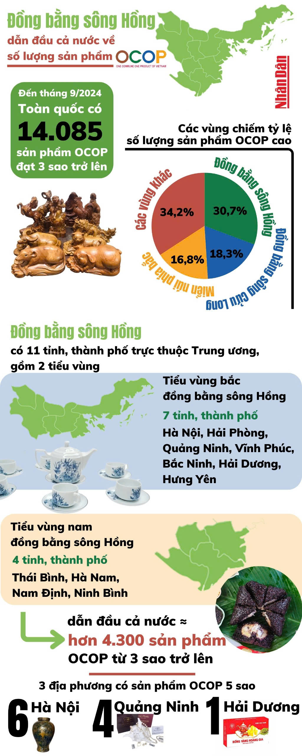 Sau 6 năm triển khai Chương trình Mỗi xã một sản phẩm, vùng Đồng bằng sông Hồng đã vươn lên dẫn đầu cả nước về số lượng sản phẩm OCOP đạt từ 3 sao trở lên.