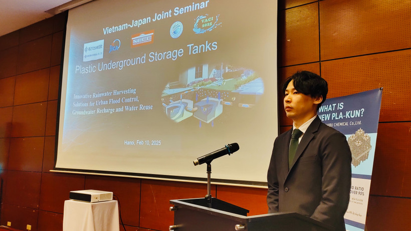 Bên cạnh đó, các đại biểu từ Hiệp hội Công nghệ lưu trữ và thẩm thấu nước mưa Nhật Bản và Công ty Chichibu Chemical Co., Ltd. đã trình bày về các quy định trong luật pháp của Nhật Bản liên quan đến thoát nước mưa, cũng như các ví dụ về việc sử dụng bể chứa nước mưa bằng nhựa tại Nhật Bản.