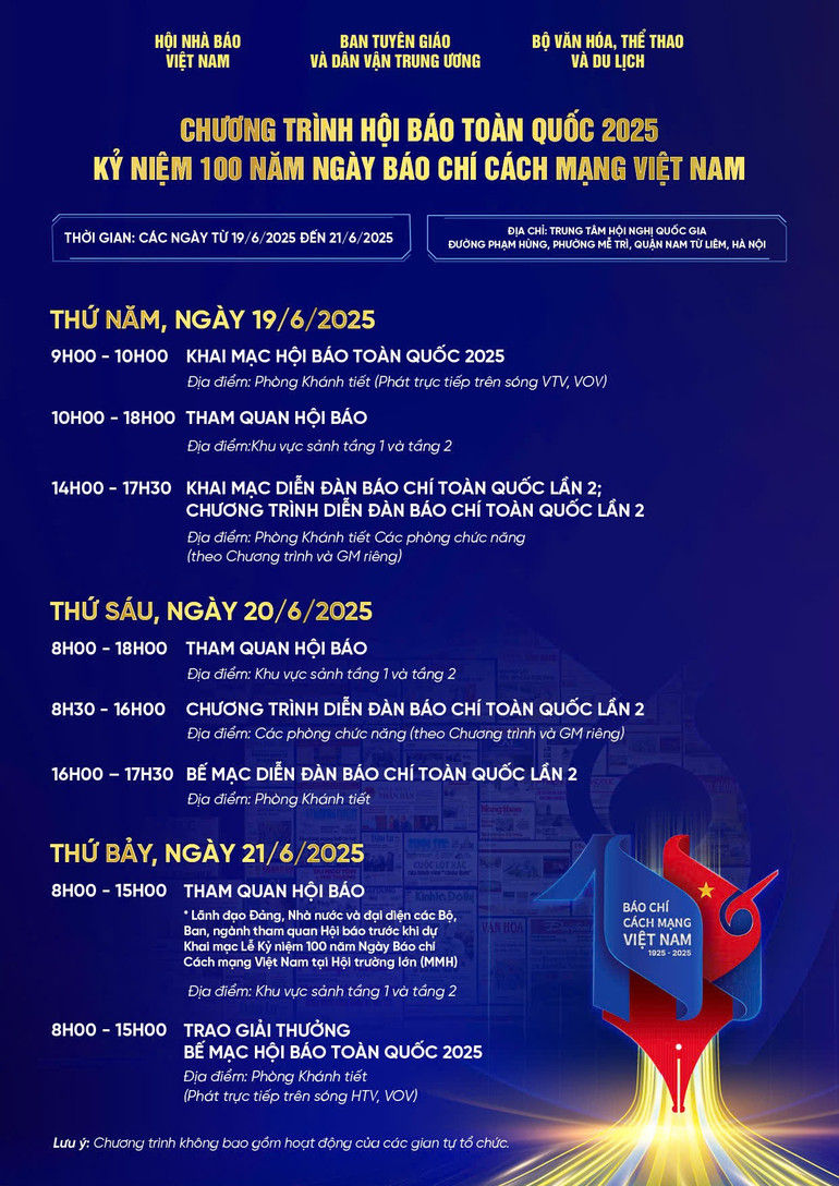 Hội Báo toàn quốc năm 2025 với chủ đề "Báo chí Việt Nam - Trung thành, Sáng tạo, Bản lĩnh, Đổi mới vì sự nghiệp xây dựng và bảo vệ Tổ quốc" sẽ là điểm nhấn về tinh thần đổi mới, sáng tạo, toàn diện về tầm nhìn với nhiều hoạt động trưng bày ấn tượng, hoạt động chuyên môn phong phú, thiết thực cùng chương trình văn hóa, nghệ thuật đặc sắc.