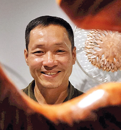 - Chỉ riêng việc lựa chọn loại gỗ và cách xử lý chất liệu này để bảo toàn được sự bền vững cho tác phẩm cũng là một thử thách khó khăn. Một vài năm trước, tôi phải làm lại một tác phẩm vì phần gỗ bằng gỗ nhãn đã bị nứt, chỉ sau một thời gian ngắn. Đó là trải nghiệm khó chịu mà tôi không muốn lặp lại. Cũng bởi tôi chỉ mới làm quen với chất liệu gỗ trong khoảng 5-7 năm trở lại đây, mà gỗ thì vô cùng phong phú về chủng loại.