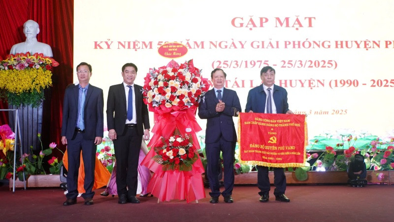 Phát biểu tại buổi gặp mặt, đồng chí Bí thư Thành ủy Lê Trường Lưu đã biểu dương, chúc mừng Đảng bộ và nhân dân Phú Vang với những thành tựu đạt được trong 50 năm qua rất đáng tự hào, đó là thành quả chung của các thế hệ lãnh đạo, cán bộ, đảng viên, lực lượng vũ trang và nhân dân trong toàn huyện đã vượt qua mọi khó khăn, thử thách, chung sức, đồng lòng, kiên trì, quyết tâm phấn đấu xây dựng Phú Vang ngày càng phát triển.