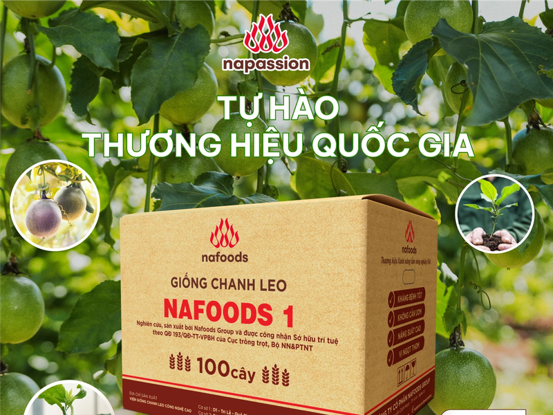Cây giống chanh leo Nafoods 1 do đội ngũ chuyên gia của Nafoods nghiên cứu và phát triển nhiều năm, đến năm 2023 diện tích trồng chanh leo Nafoods 1 đã được phủ xanh trên diện rộng nhờ sự tin tưởng xuống giống của bà con.