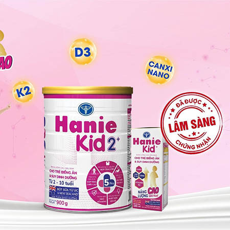 Không chỉ cung cấp nguồn năng lượng cao 100 kcal/100 ml theo khuyến nghị của Tổ chức Y tế thế giới (WHO) với trẻ suy dinh dưỡng, Hanie Kid còn được các mẹ yêu thích, tin dùng bởi nhiều những lợi ích như bổ sung bộ 3 canxi nano, vitamin D3 và K2 hỗ trợ phát triển chiều cao.