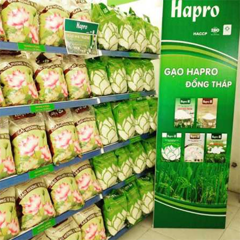 Các dòng sản phẩm gạo Hapro Đồng Tháp được thu hoạch, chế biến, đóng gói lại nhà máy xay xát và chế biến gạo xuất khẩu của Hapro đặt tại huyện Lai Vung, tỉnh Đồng Tháp - vựa lúa lớn nhất của Đồng bằng sông Cửu Long với công suất chế biến gạo đạt 14 tấn/giờ.