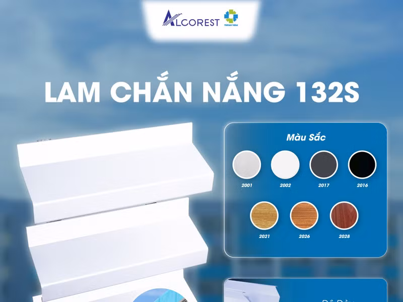 - Lam chắn nắng 132S: có thiết kế thanh lam dạng sóng hình chữ Z rộng 132mm, được gắn trên hệ khung xương theo chiều dọc, phù hợp với công trình dân dụng như trường học, trung tâm thể thao, bệnh viện, sân bay…