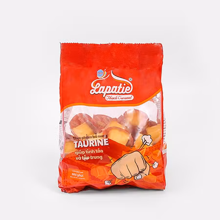 Với khả năng nghiên cứu, ứng dụng sản xuất và dây chuyền máy móc sản xuất hiện đại, khép kín Công ty TNHH Long Hải đã ra mắt dòng sản phẩm thạch caramel Lapatie bổ sung Taurine. Taurine được phân loại là một axit amin thiết yếu có điều kiện, phục vụ các chức năng quan trọng khác nhau trong cơ thể.