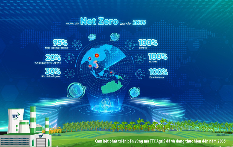 Trước những thách thức của biến đổi khí hậu và yêu cầu ngày càng cao từ thị trường quốc tế, TTC AgriS không chỉ dừng lại ở công nghệ mà còn đặt trọng tâm vào phát triển bền vững. Công ty đang triển khai các chương trình đào tạo nông dân, giúp họ tiếp cận các mô hình nông nghiệp thông minh, nâng cao hiệu suất sản xuất và giảm thiểu tác động tiêu cực đến hệ sinh thái. Đồng thời, TTC AgriS đặt mục tiêu net zero vào năm 2035 thông qua các dự án trồng rừng và sử dụng năng lượng tái tạo, góp phần vào nỗ lực toàn cầu trong việc bảo vệ môi trường.