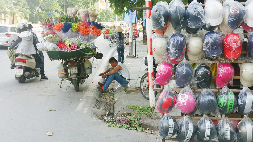 Câu chuyện với chị giữa chừng gián đoạn bởi từ xa có tiếng vọng tới: “Xe kìa, xe kìa!”. Trông ra thì là xe phường đi dẹp trật tự đường phố. Chị lật đật lên xe đạp chúi vào một con hẻm gần đó. Cách đây vài tháng, chị bị tịch thu luôn xe hàng, tính ra tiền vốn hơn triệu đồng. “Nhiều lúc thấy bán hàng vất vả mà cực nhọc quá. Người nghèo như chúng tôi ra Hà Nội chỉ biết bán buôn nhỏ lẻ, cũng biết là mất mỹ quan đô thị nên chúng tôi chỉ bán cho mấy khu công nhân, sinh viên nghèo, cũng xa trung tâm mà...”, chị nói.