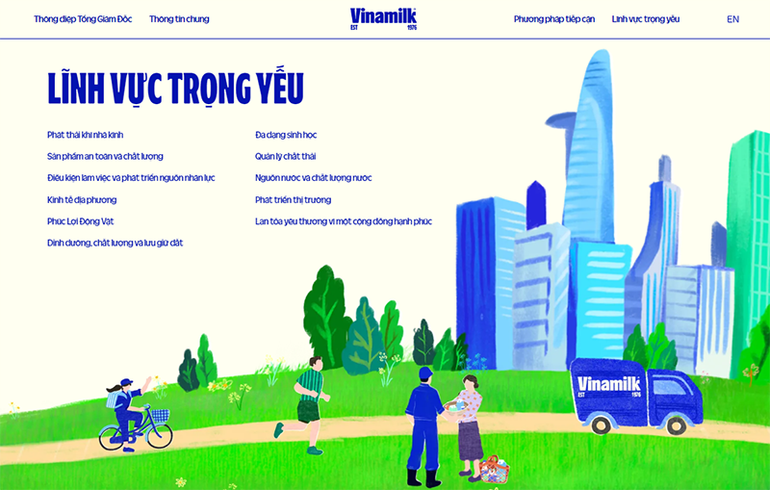 Thông tin được trình bày bao gồm phương thức quản lý, mục tiêu nhằm phác họa toàn cảnh bức tranh hoạt động trong năm, và định hướng PTBV cho tương lai. Đề cao yếu tố minh bạch, Báo cáo PTBV của Vinamilk luôn được đảm bảo bởi đơn vị kiểm toán độc lập.