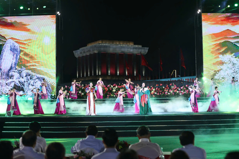 Những điểm nhấn nghệ thuật như liên khúc ca kịch “Bác Hồ và thiếu nhi”; hoạt cảnh “Cha-con vì nghĩa lớn”; hoạt cảnh thơ múa “Hình đất nước phôi thai”; hoạt cảnh thơ “Sao vàng năm cánh mộng hồn quanh”… là những lát cắt giàu cảm xúc về Chủ tịch Hồ Chí Minh. Người xem được gặp hình ảnh vị lãnh tụ kính yêu, Anh hùng giải phóng dân tộc, Danh nhân văn hóa thế giới qua những ca khúc đi cùng năm tháng viết về Bác, như: “Đêm qua em mơ gặp Bác Hồ”; “Ai yêu bác Hồ Chí Minh hơn thiếu niên nhi đồng”; “Đêm nghe hát đò đưa nhớ Bác”; “Dấu chân phía trước”; “Tình Bác sáng đời ta”…